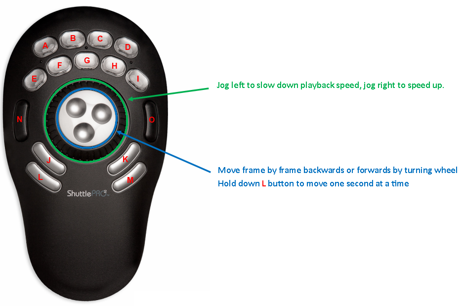 The ShuttlePro has 14 configurable buttons in addition to the Jog and Shuttle wheels.