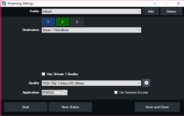 4. Untick Use Stream 1 Quality on each of these streams to configure an independent bitrate from the Quality dropdown box.
